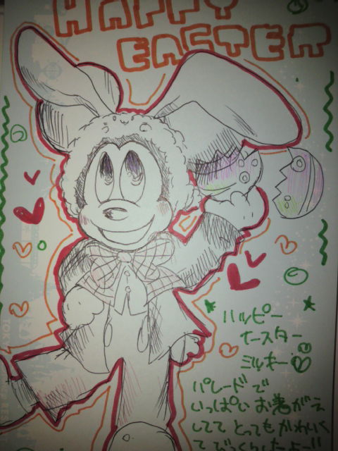 ありがとうは言葉だけでも伝わるんだけど、ミッキーがあんまりかわいいからありがとうがいいたくて、ペンとかぜんぶそろえて。